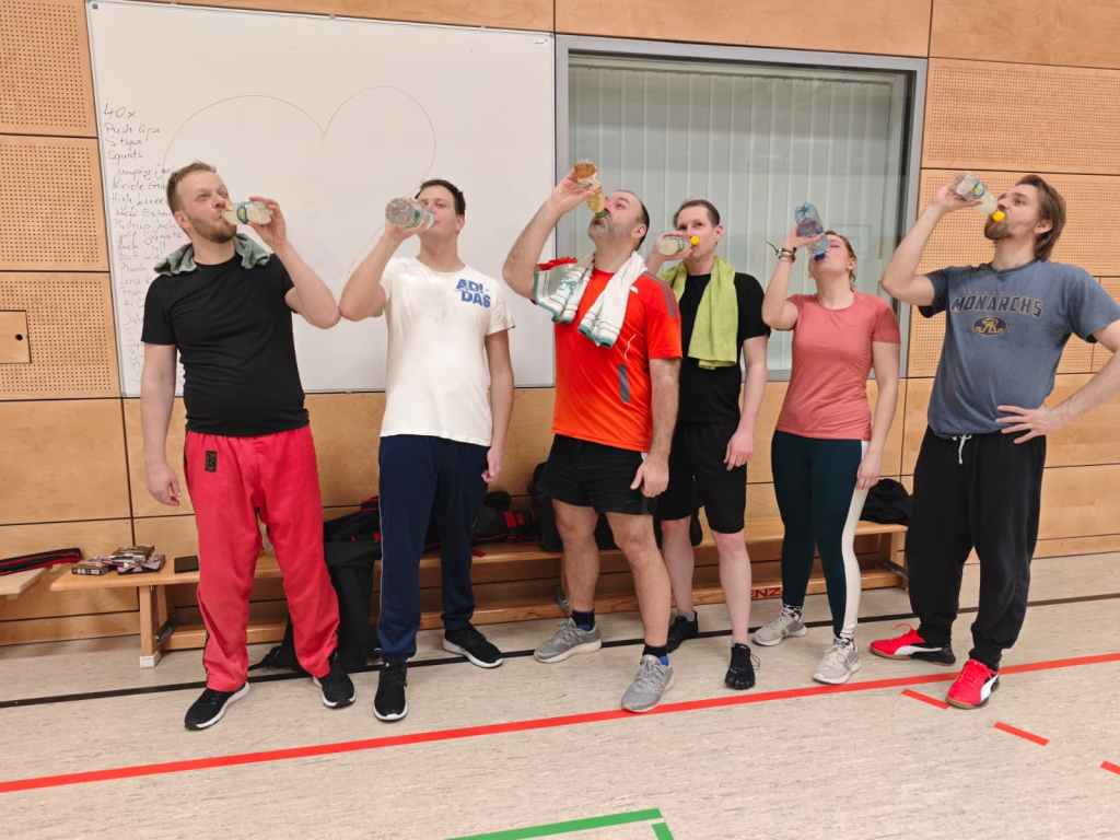Der Start erfolgte mit einer Übung und 20 Wiederholungen. Jeden Tag kam eine neue Übung und eine Wiederholung dazu. Unsere Vereinsmitglieder konnten natürlich freiwillig entscheiden, ob sie teilnehmen wollen oder nicht. An den regulären Trainingstagen führten wir die Übungen als Gruppe durch. An den Tagen dazwischen gab es die Möglichkeit, sich online zu verbinden, um der klebrigen Couch leichter entkommen zu können. Der Gruppenzusammenhalt half dann die zunehmend schwerer werdenden Einheiten zu absolvieren.